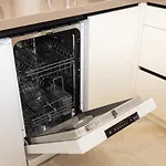 Există o bucătărie cu mașină de spălat vase și cuptor. Apartamentul are o terasă, unde oaspeții pot savura o ceașcă de ceai.